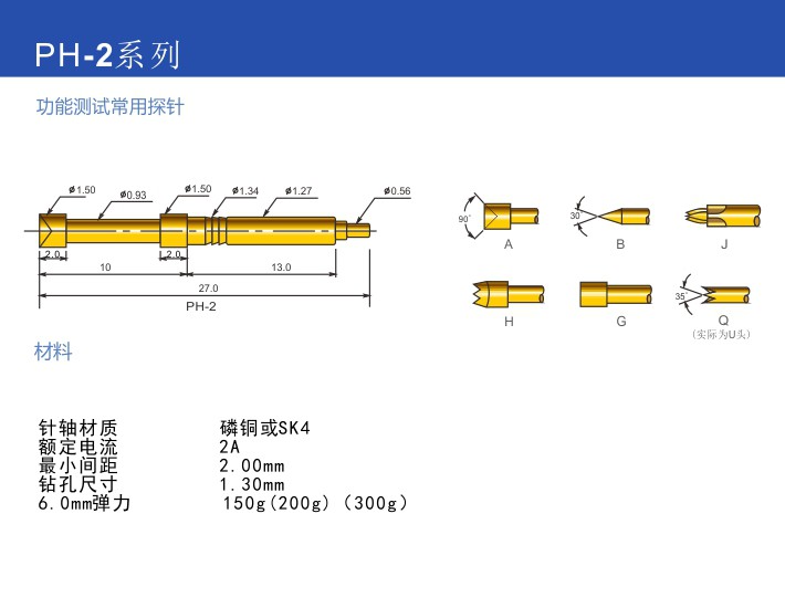 PH-3A 3G 3H 3Q1華榮一體式功能測試針 1.77mm彈簧探針 廠家直銷