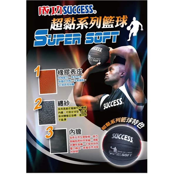 成功SUCCESS-深溝少年籃球(國小專用)5號 附球針、球網 手感超黏,可提升控球感