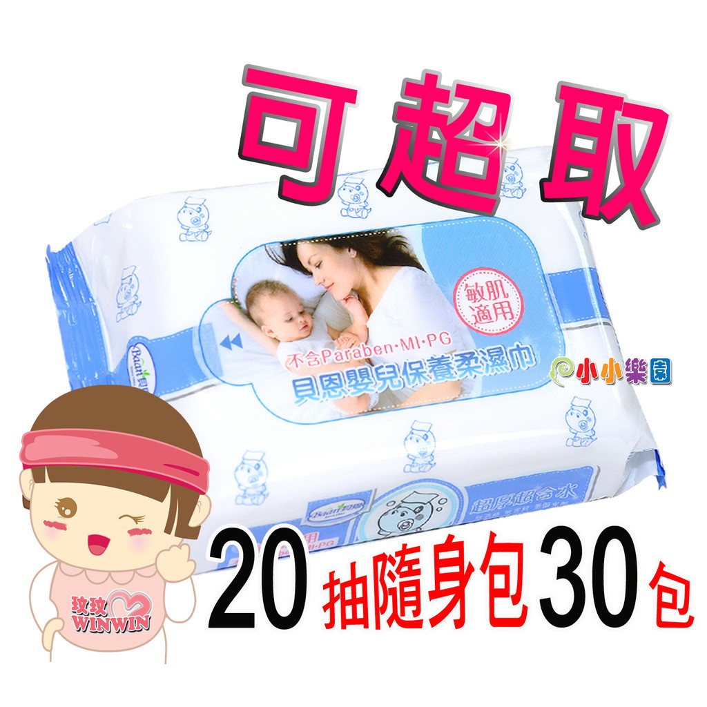 全新升級貝恩嬰兒保養柔濕巾、貝恩濕紙巾20抽超厚型 「20抽x30包870元可超取 」超厚、超含水*小小樂園*