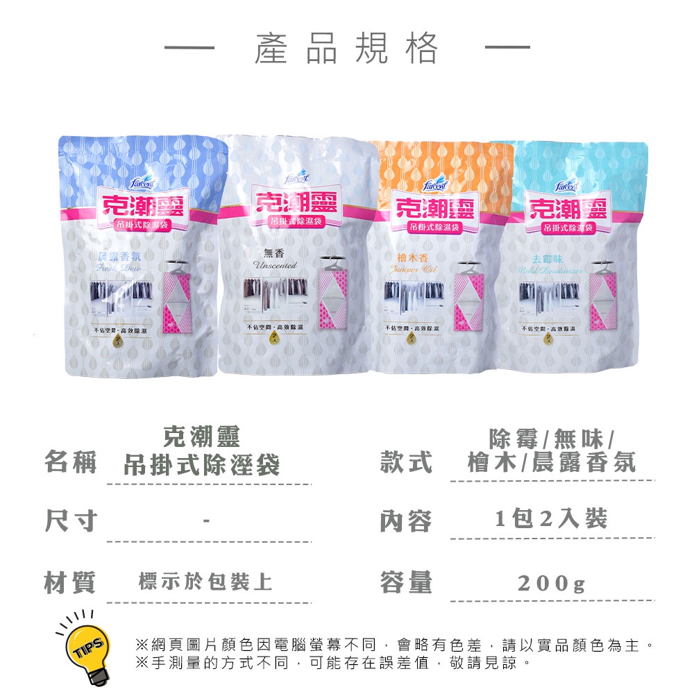 克潮靈吊掛式除濕袋 除溼袋 除濕包 衣櫥 衣櫃 洗手間 衣櫥除濕 去異味 防潮劑 除濕劑 雷霆百貨