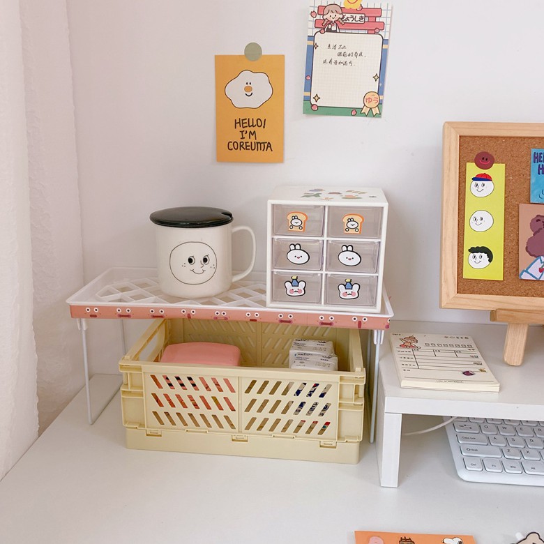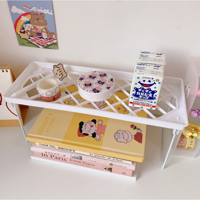Medis韓國 ins同款 無印風 簡約折 疊收納架 收納 置物架 學生 桌面增高架 手帳文具 雜物 置物架 拍照道具