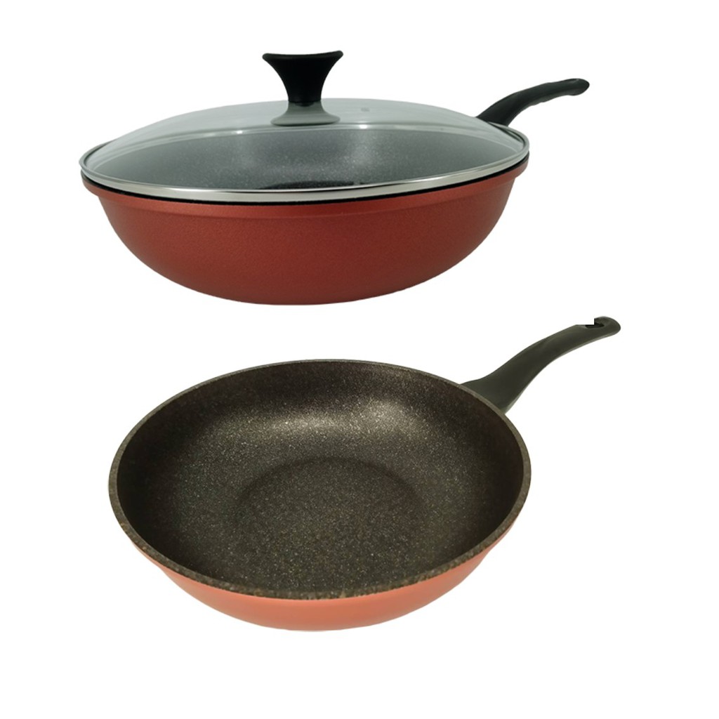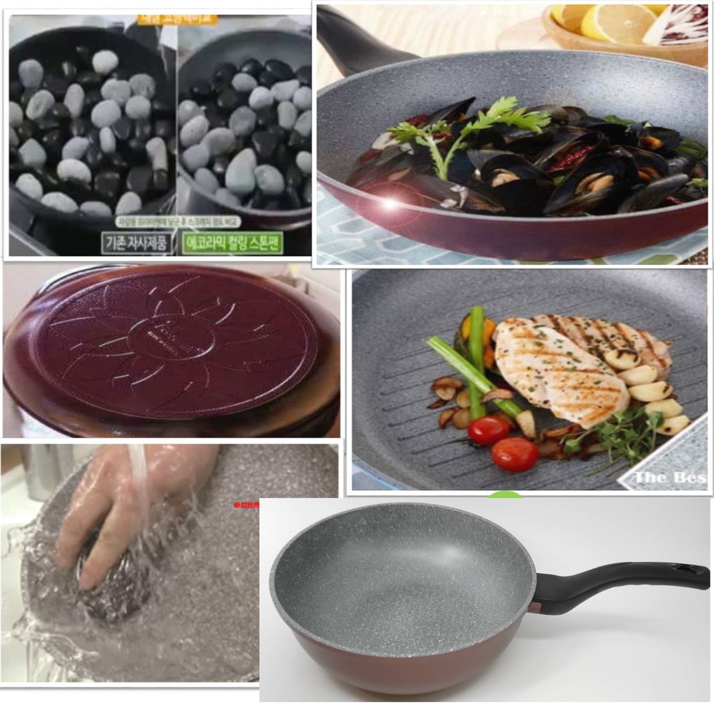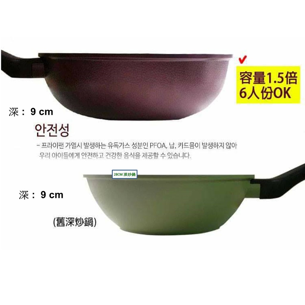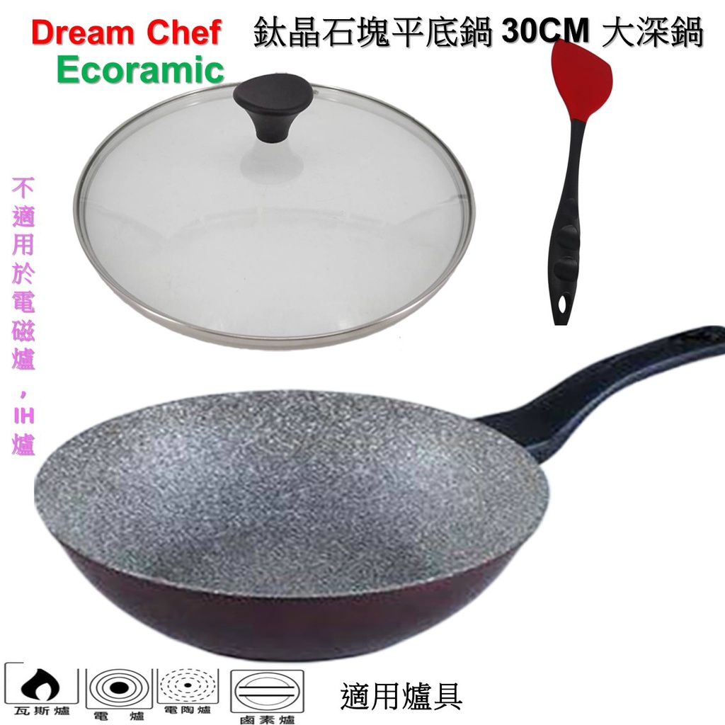 韓國ECORAMIC (Dream Chef) 鈦晶石頭 30CM 不沾鍋 大深鍋 炒鍋 酒紅色/珊瑚粉色