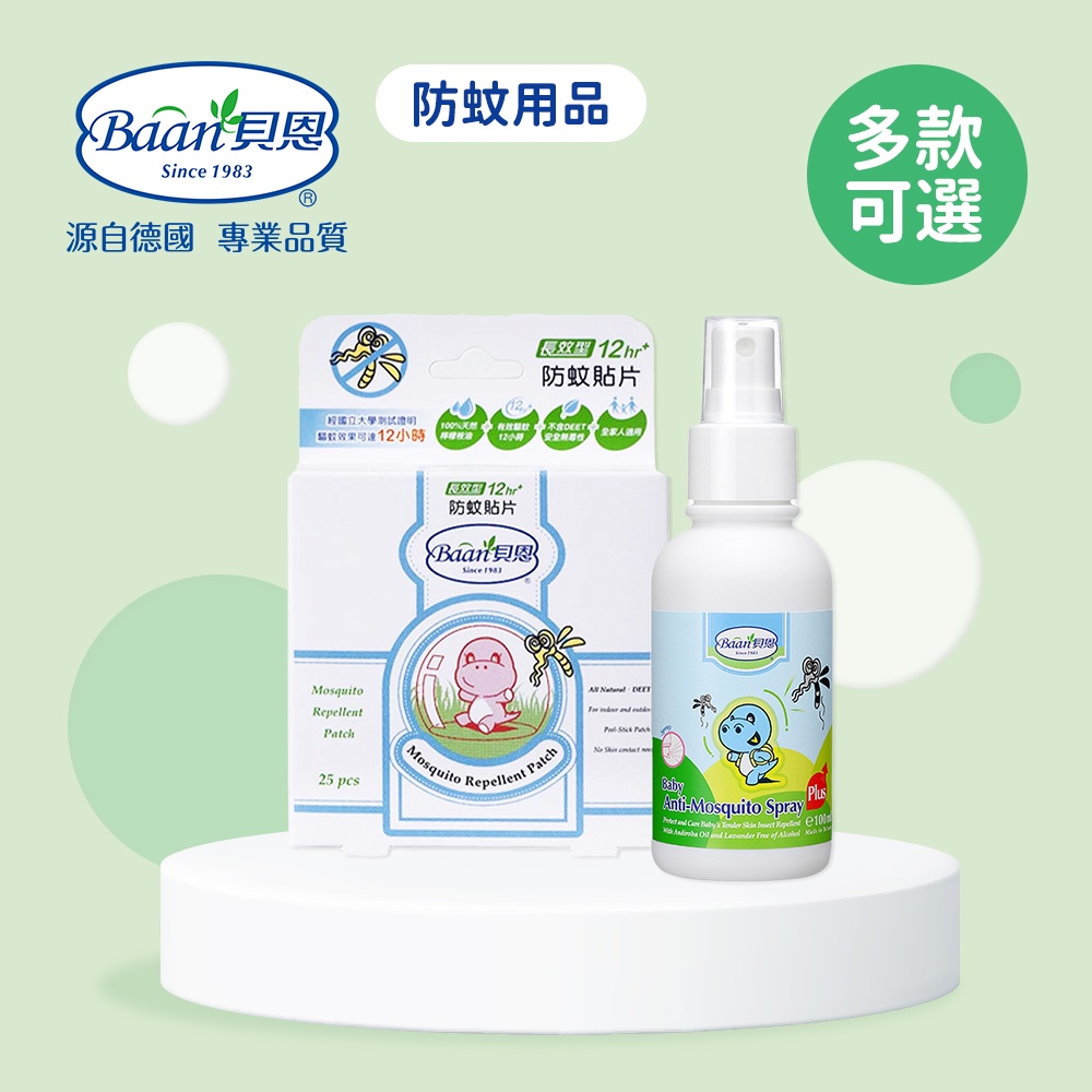 Baan 貝恩 嬰兒 防蚊貼片25片 嬰兒小黑蚊 防蚊噴液100ml 多款可選 嬰幼兒 外出防蚊