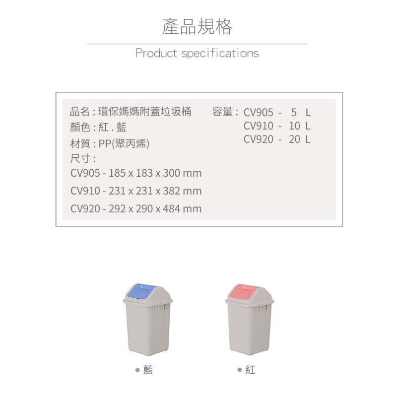 KEYWAY CV-920 環保媽媽 20L 附蓋垃圾桶 CV920