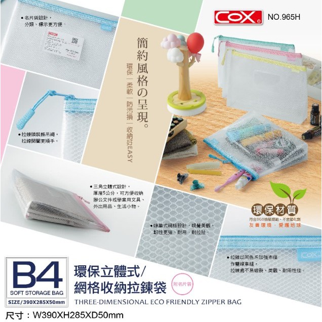 【黑麻吉】COX EVA 立體式 網格 收納 拉鍊袋 NO.951H/963H/965H 有名片袋B4 B5 B6