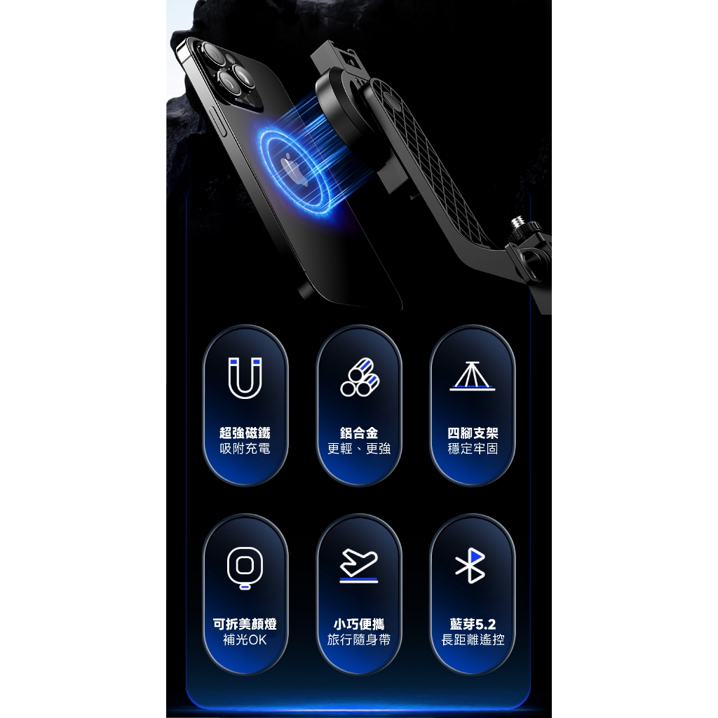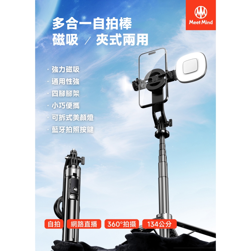 Meet Mind│Phantom2 多合一磁吸/夾式 自拍棒 自拍桿+補光燈 磁吸自拍桿