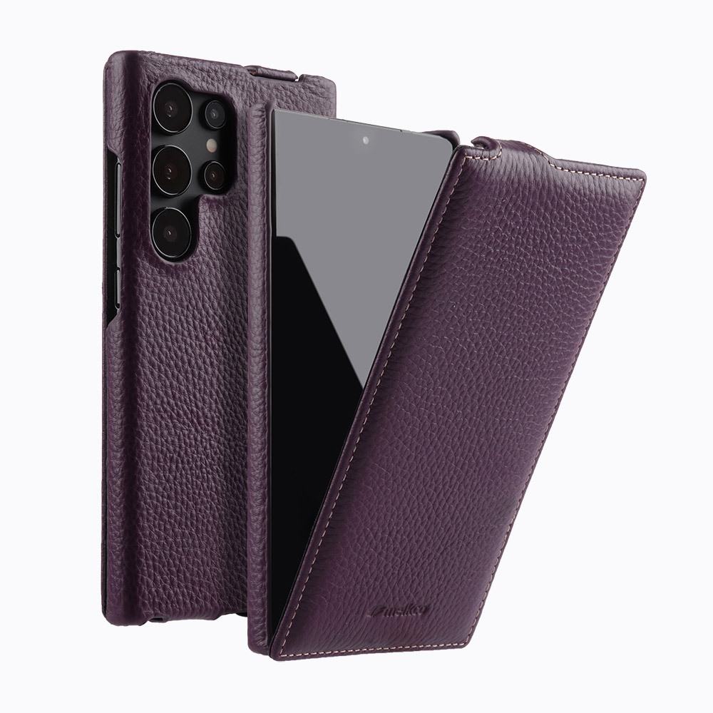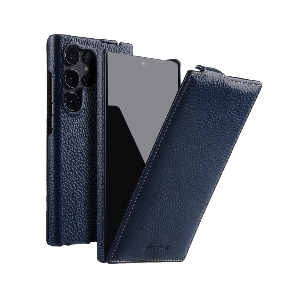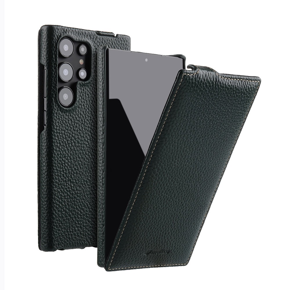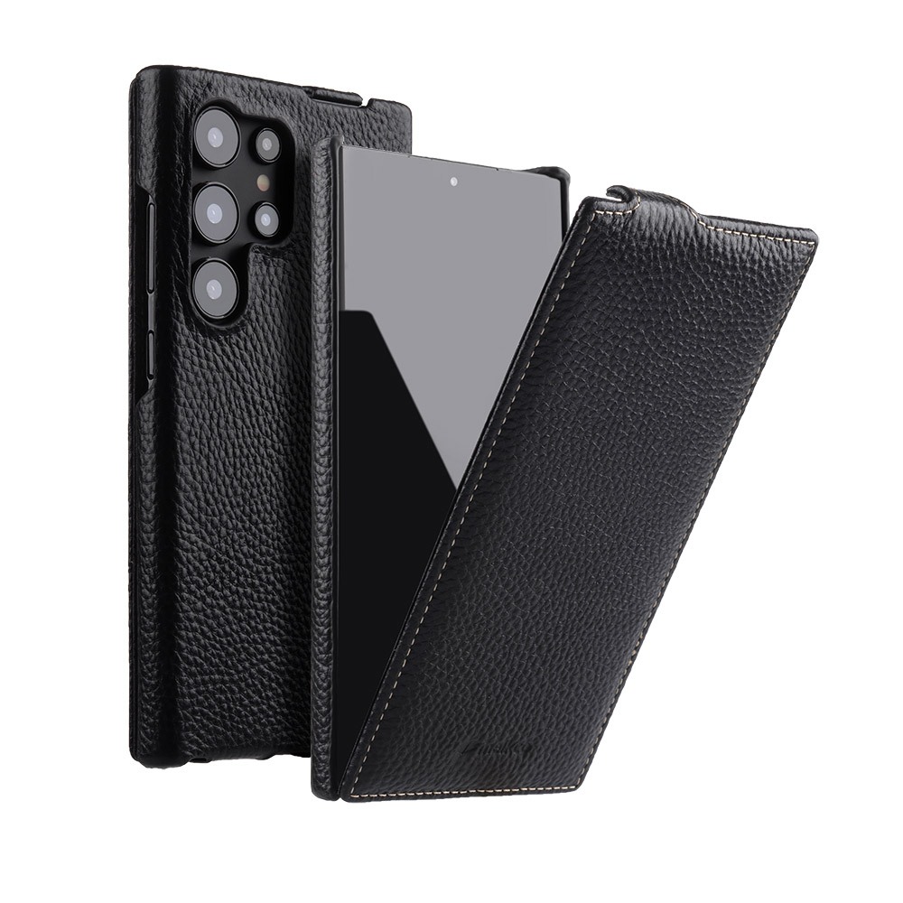 Melkco特價 三星S24 Ultra S9280下翻 弧鈎 全包覆 真皮 黑色 皮套 手機套殼 保護套殼 防摔套殼