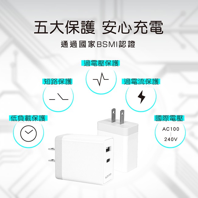 含稅全新原廠保固一年KINYO安規BSMI認證大電流多重保護單USB+TYPEC單孔充電器(CUH-5335)