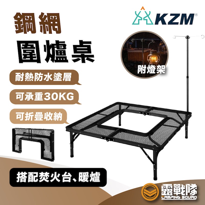 KZM 鋼網圍爐桌 烤肉桌 鋼桌 料理桌 攜帶桌 矮桌 圍爐桌 焚火台 營火桌 行動廚房 露營桌 野炊桌 戶外【露戰隊】