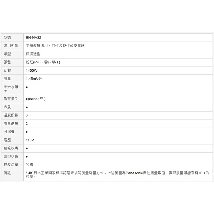 Panasonic 國際牌 EH-NA32 奈米水離子吹風機 台灣公司貨 EH-NA32【領券再折】