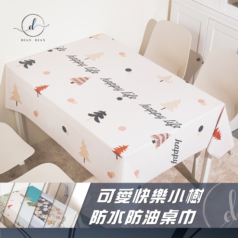 【墊墊DianDian】現貨 北歐風快樂小樹桌巾 桌布 防水防油桌巾 皮革桌巾 野餐墊 露營桌巾 可愛桌巾