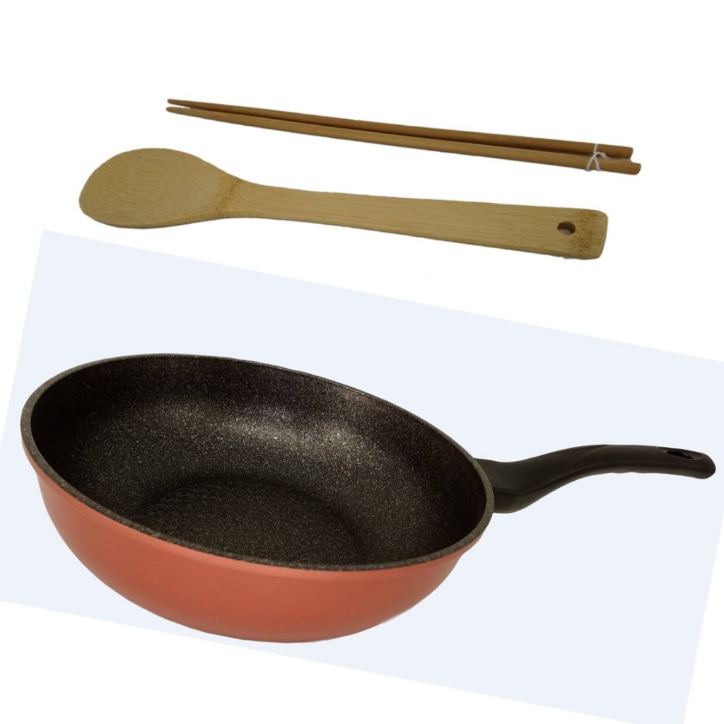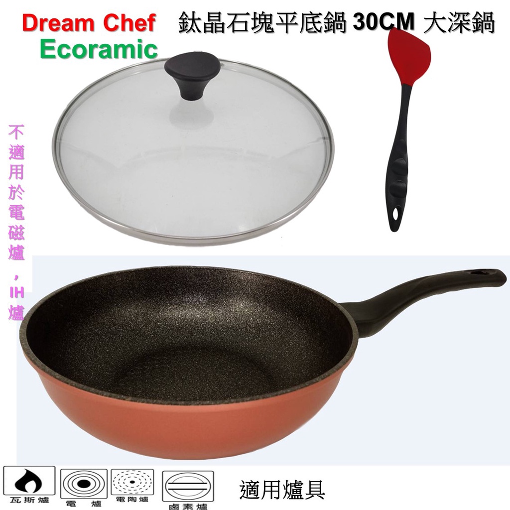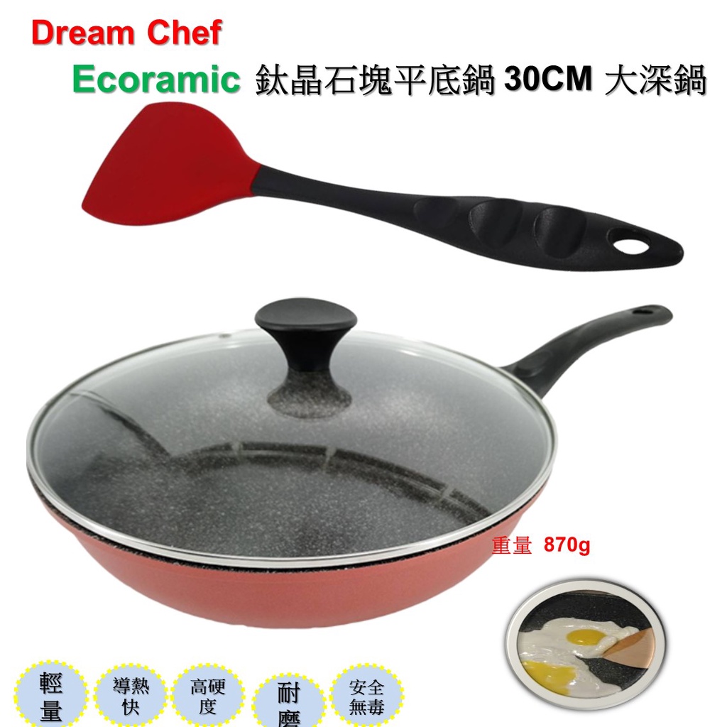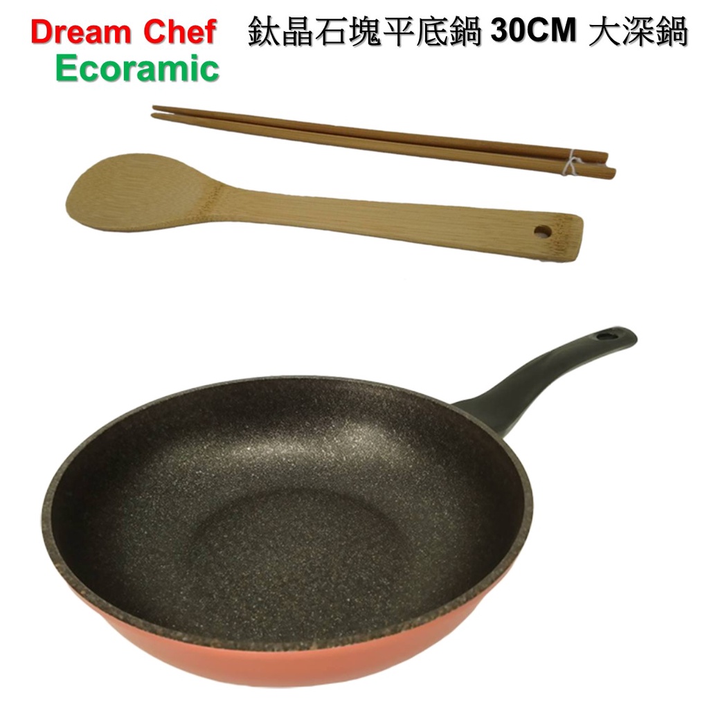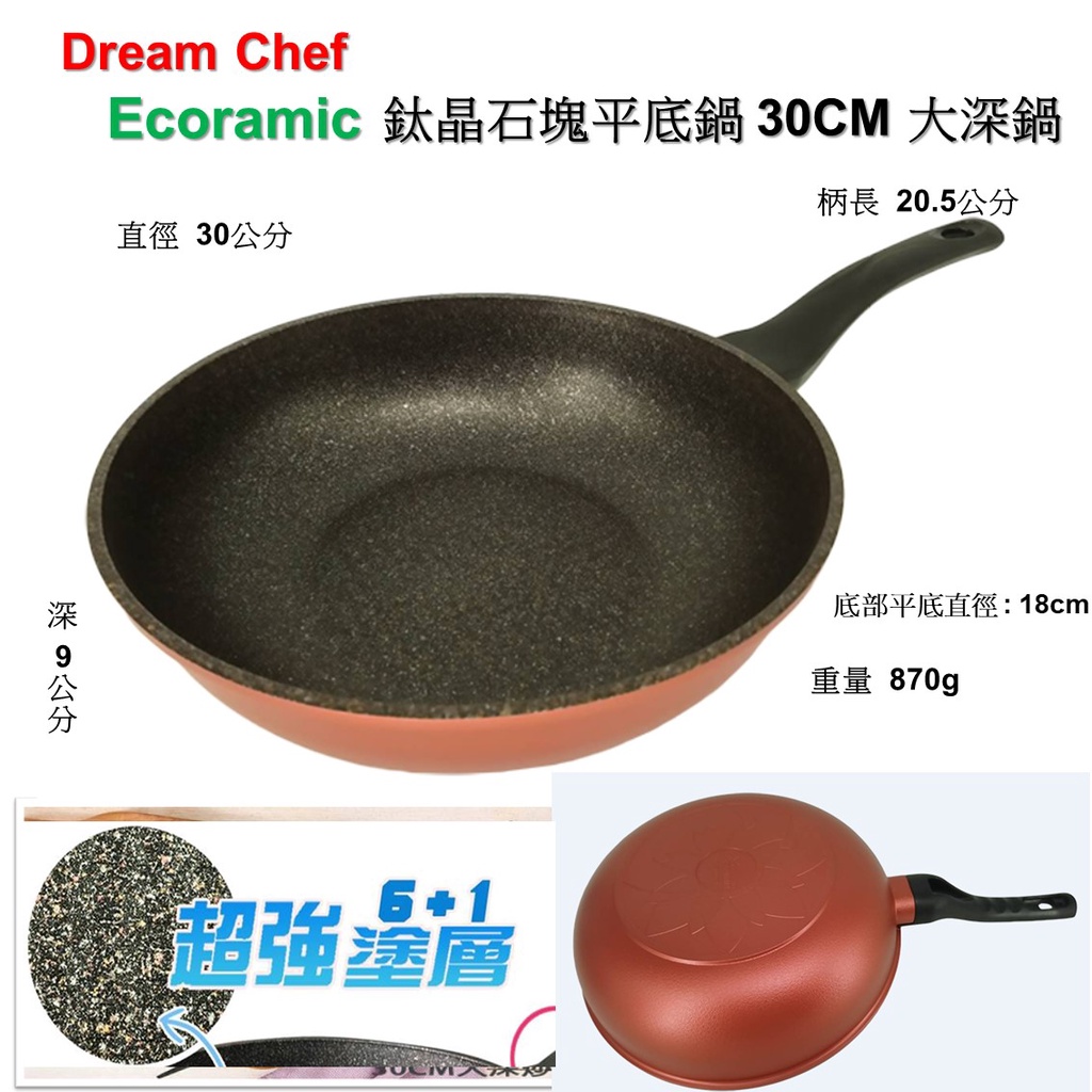 韓國ECORAMIC 鈦金石塊 不沾鍋 大深鍋 大深平底鍋 30CM珊瑚粉大深炒不沾鍋