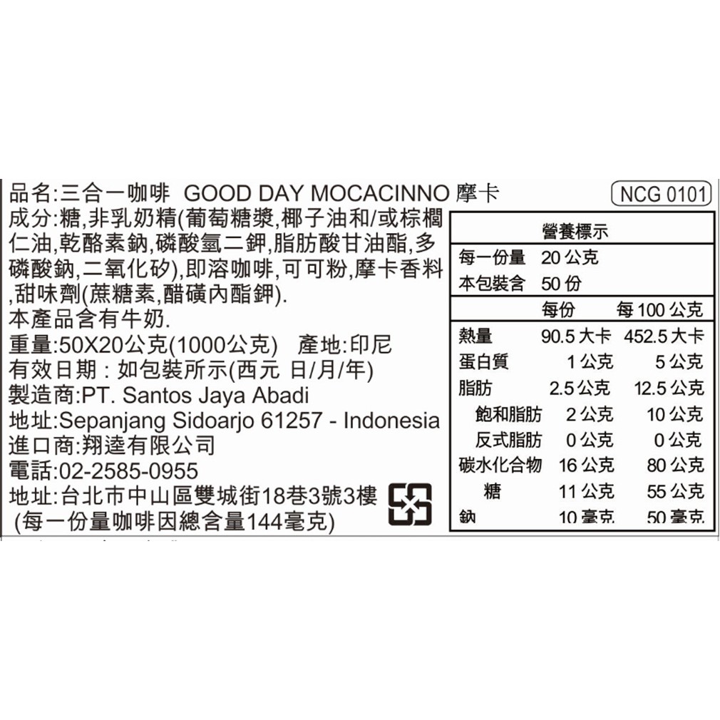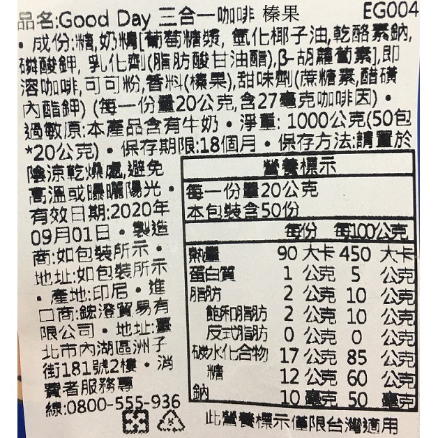 印尼 GOOD DAY 好日子三合一咖啡 20g*50包(大袋)