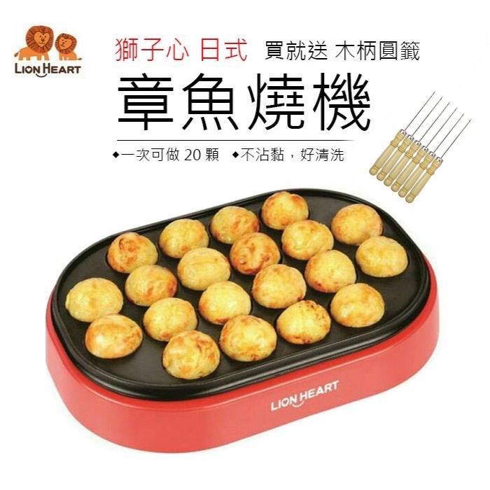 【實體店面現貨 免運 買就送圓籤 】獅子心 日式 章魚燒機 章魚燒 附食譜 油刷 章魚燒叉 LSG-129 附發票