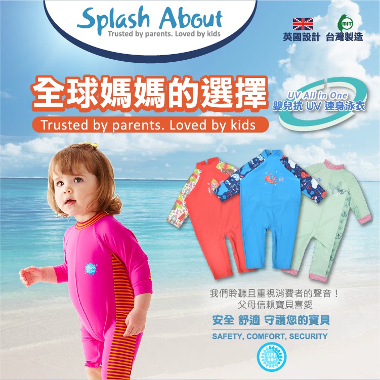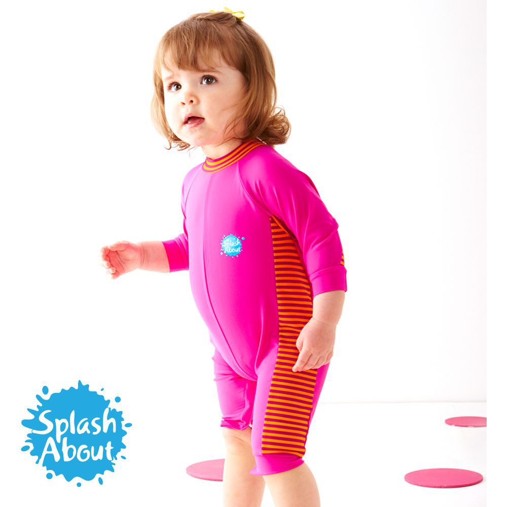 《Splash About 潑寶》UV All in One 嬰兒抗 UV 連身泳衣 - 桃紅 / 芒果橘條紋