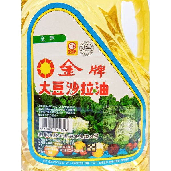 金牌 大豆沙拉油 3L(超商取貨限一瓶) Minyak Sayur