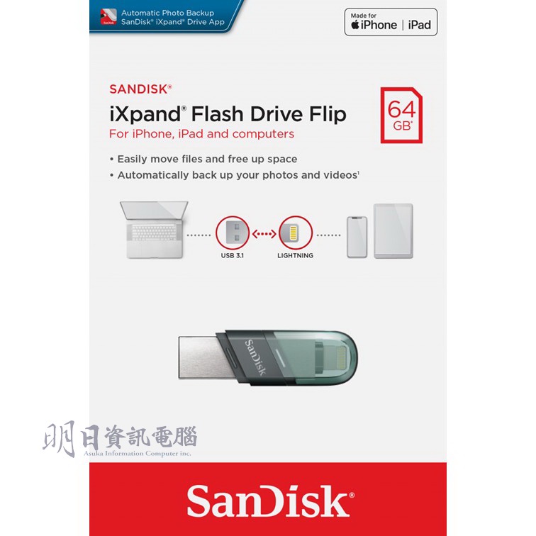 【SanDisk公司貨】iXpand Flip 蘋果 隨身碟 iPhone / iPad 適用 OTG 雙用隨身碟