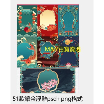 M&Y百寶賣場---筆刷---中國風祥雲花卉浮雕鑲金元素立體海報png裝飾圖片素材