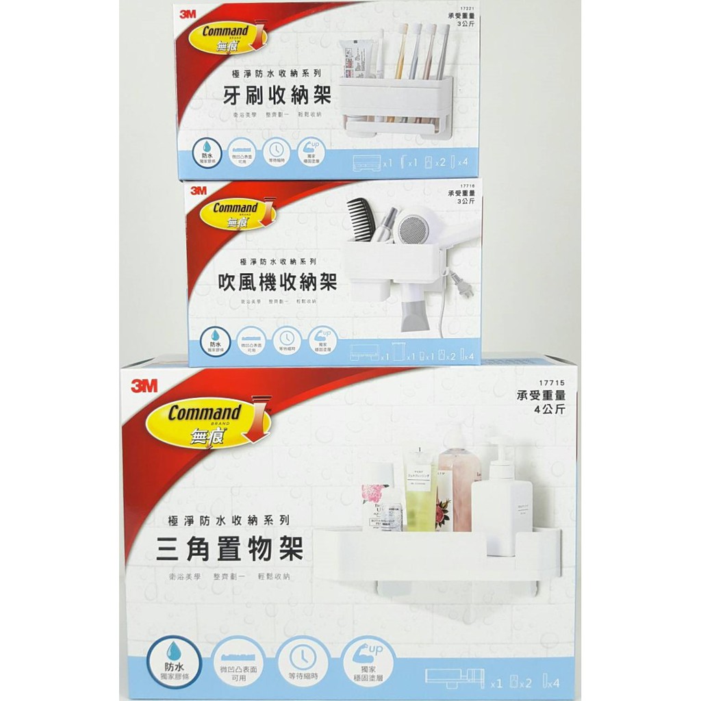 3M 無痕極淨防水收納 三角置物架.吹風機收納架.牙刷收納架.多功能置物架.毛巾架.多用途排鉤組 含稅附發票