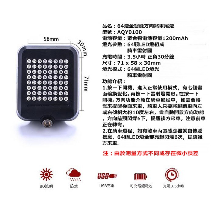 現貨12H出貨 全智能LED方向燈煞車 騎車警示安全燈騎行配件 USB充電自行車尾燈 腳踏車尾燈
