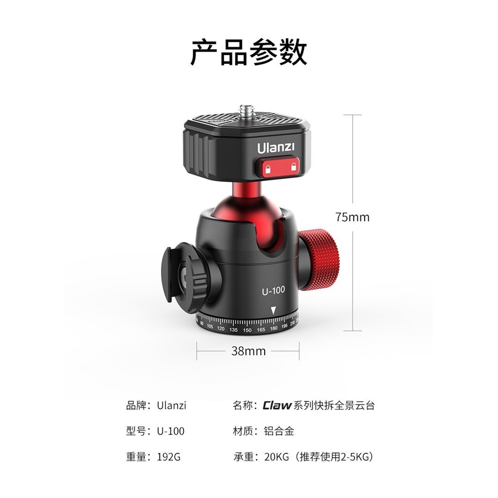 怪機絲 Ulanzi U100 銳爪快裝雲台套裝-031 360°全景拍攝 冷靴快拆底座 承重20kg