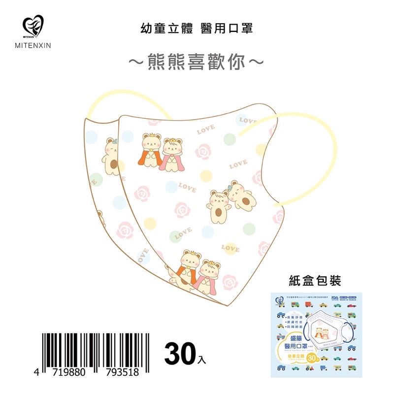 現貨🔥【盛藤/天心】 兒童/幼童2-4歲 醫療立體口罩(幼童鼻梁無壓條&兒童有壓條)❤️醫療用❤️台灣製造(一盒30入)