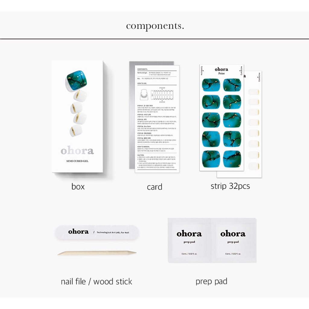 【ohora】 凝膠指甲貼(彩繪) P Tide Pool 官方旗艦店/大理石/藍色/白色
