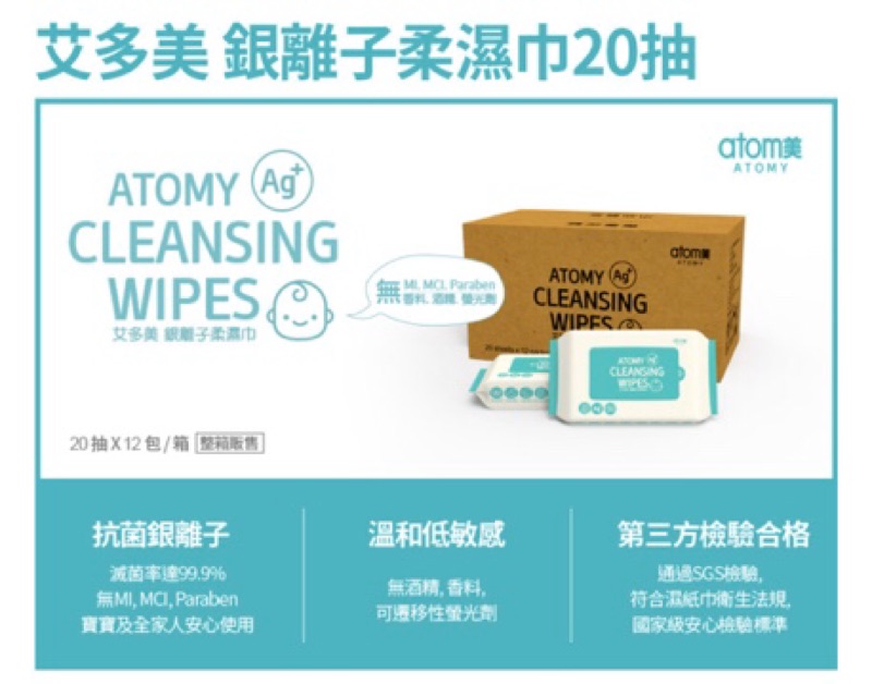 防疫 現貨 艾多美 Atomy 銀離子 濕紙巾 隨身包 20抽