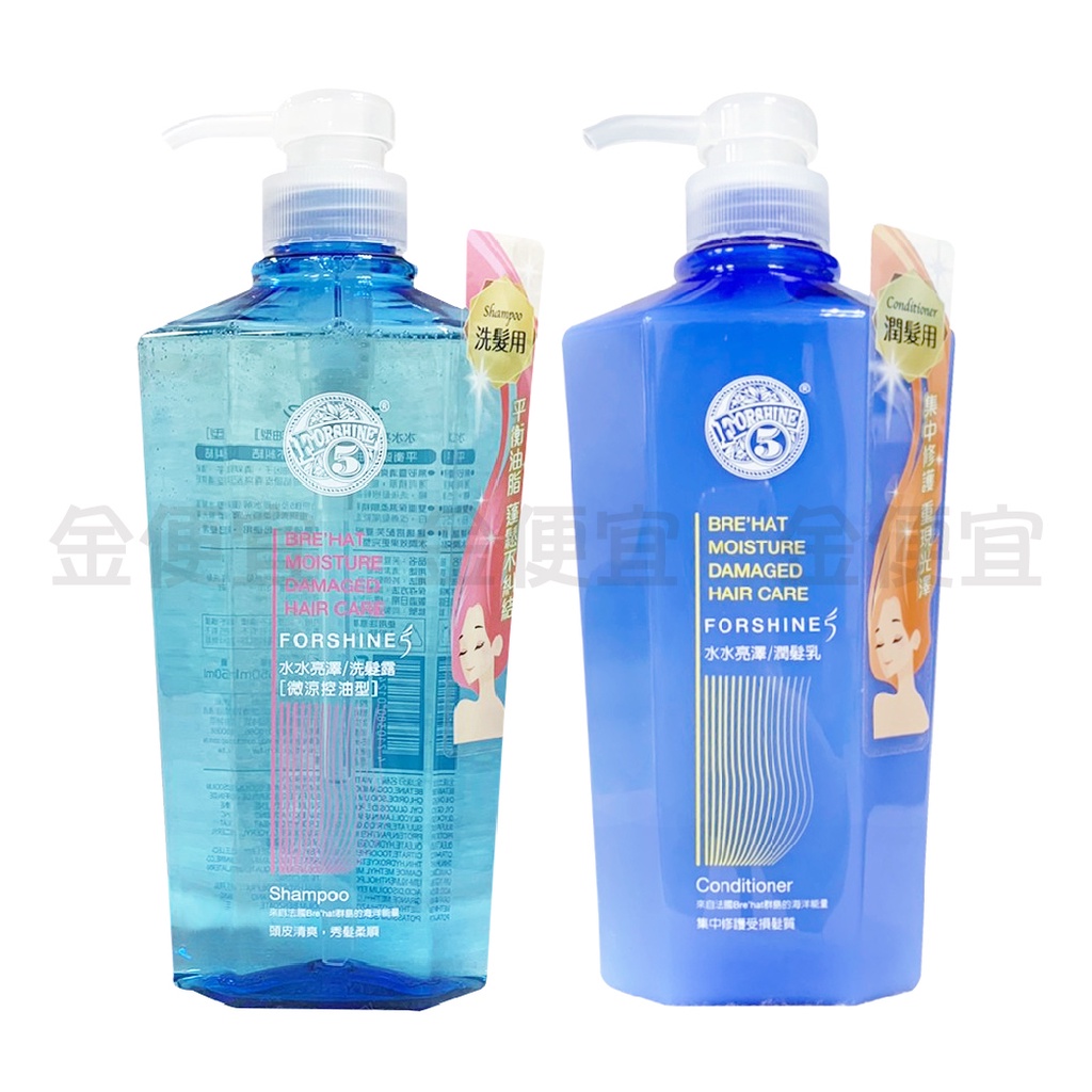 芙夏妮FORSHINE 水水亮澤洗髮露 (微涼控油型)、水水亮澤潤髮乳 550ml