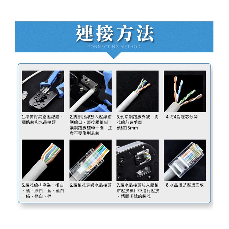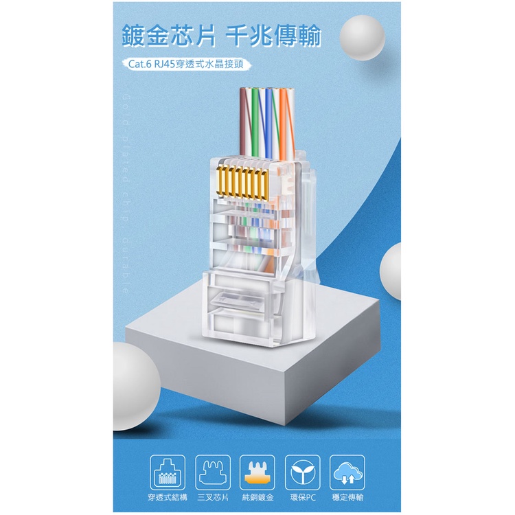 台灣霓虹 Cat.6 RJ45穿透式三叉網路水晶接頭50入