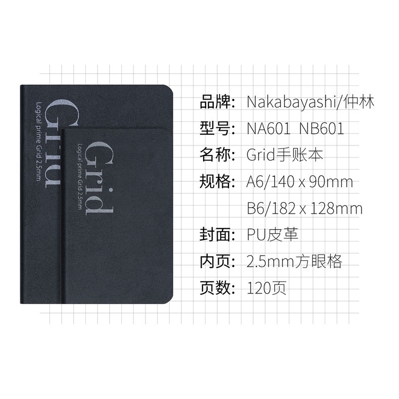 *13號店* 格美日本Nakabayashi 仲林grid筆記本子文具創意記事網格本方格子A6/B6橫格大學生手帳本圓角