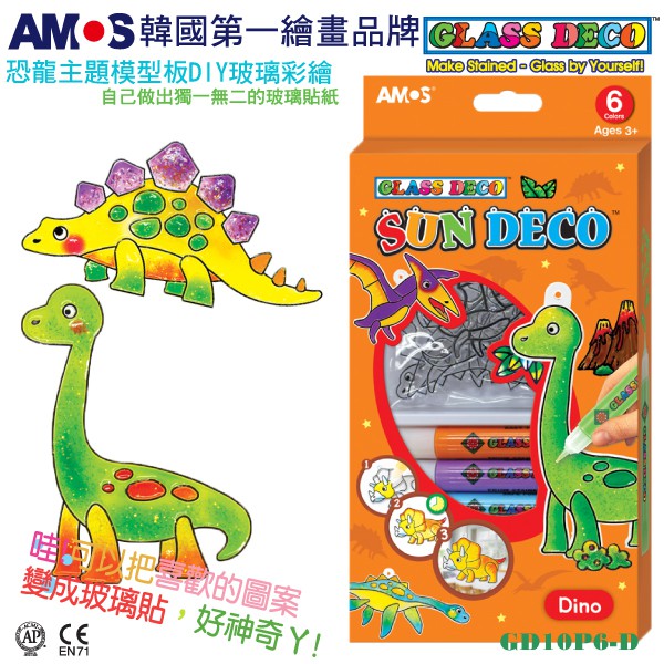 韓國AMOS 6色恐龍主題吊飾玻璃彩繪膠(台灣總代理公司貨)●小幫幫福利社現貨供應●