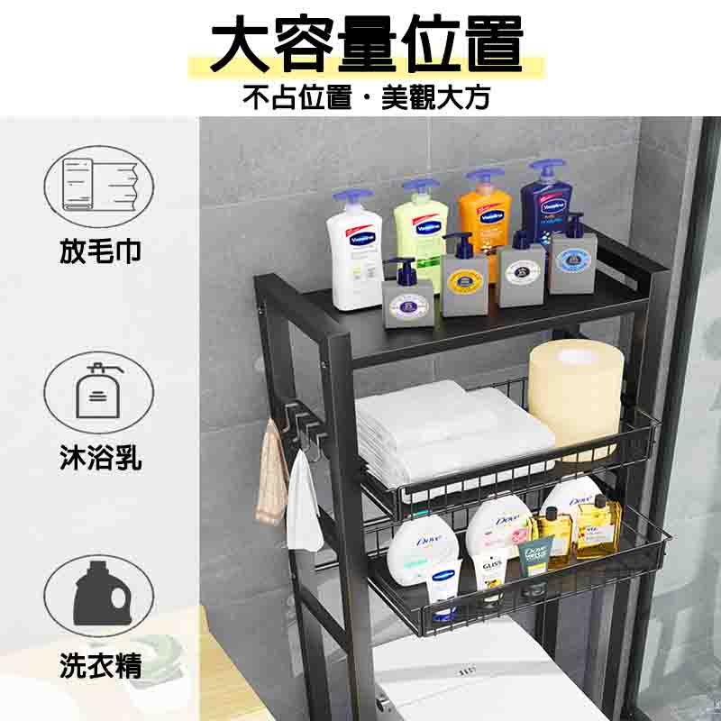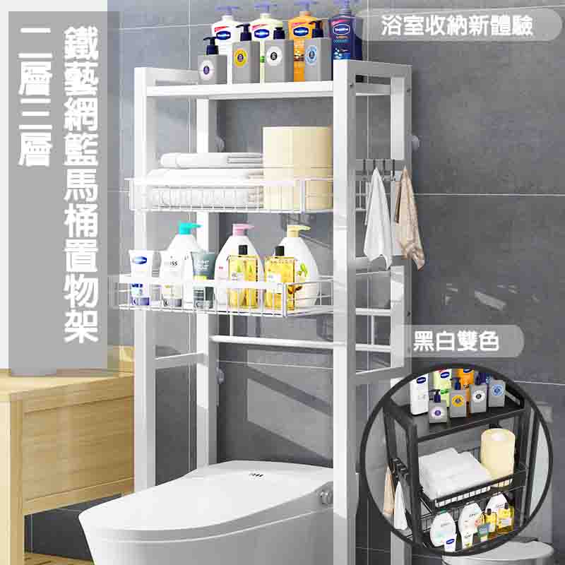 【德利生活】二層三層鐵藝網籃馬桶置物架 置物架 馬桶置物架 方便拿取 承重力佳 簡約鐵架設計 滑輪設計