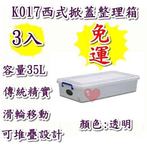《用心生活館》台製 免運 3入 35L西式掀蓋整理箱 尺寸 80.5*40.5*16cm 掀蓋式整理箱 K017