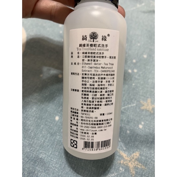 綺緣-茶樹乾式洗手凝露100ml,效期2025/2/5