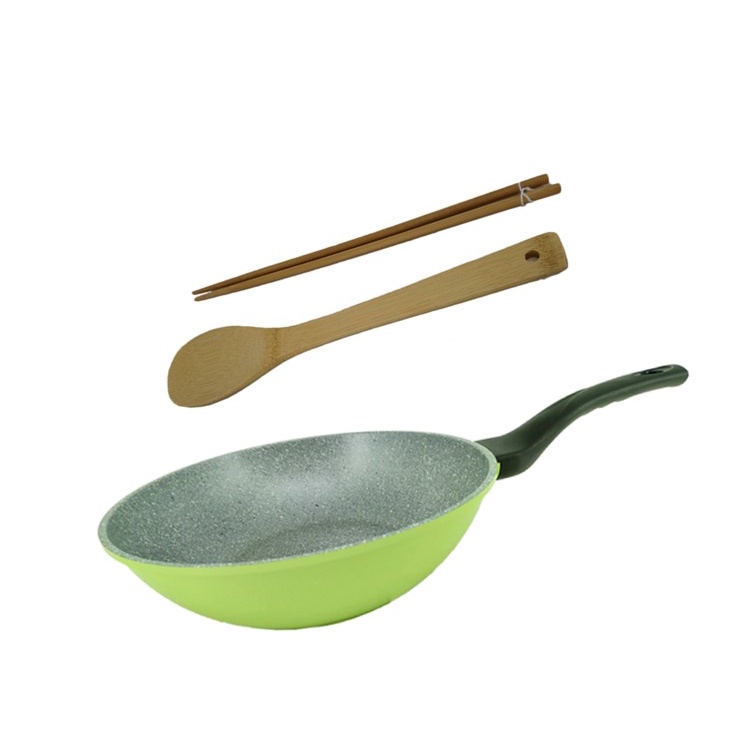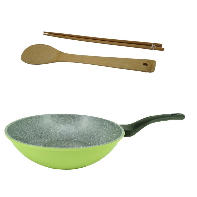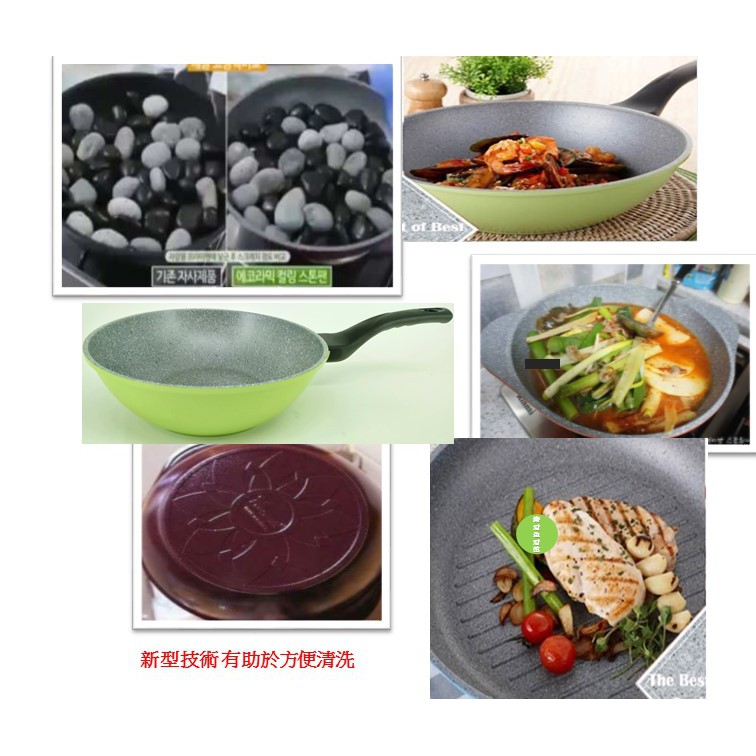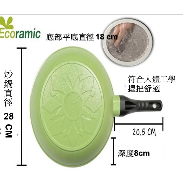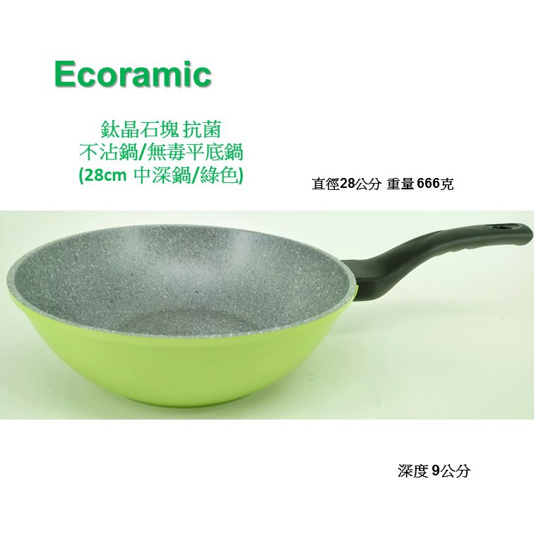 韓國ECORAMIC鈦晶石頭抗菌不沾鍋平底鍋 - 28CM 綠色/雕花粉色深炒鍋 炒鍋 不沾鍋