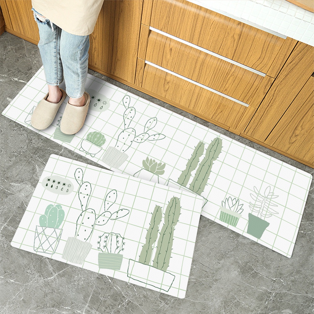 【獨家設計】防水防油 皮革地墊 長條 廚房 地墊 腳踏墊 軟裝 龜背葉 觀葉植物 綠色 居家裝飾 喬遷 送禮 窩自在