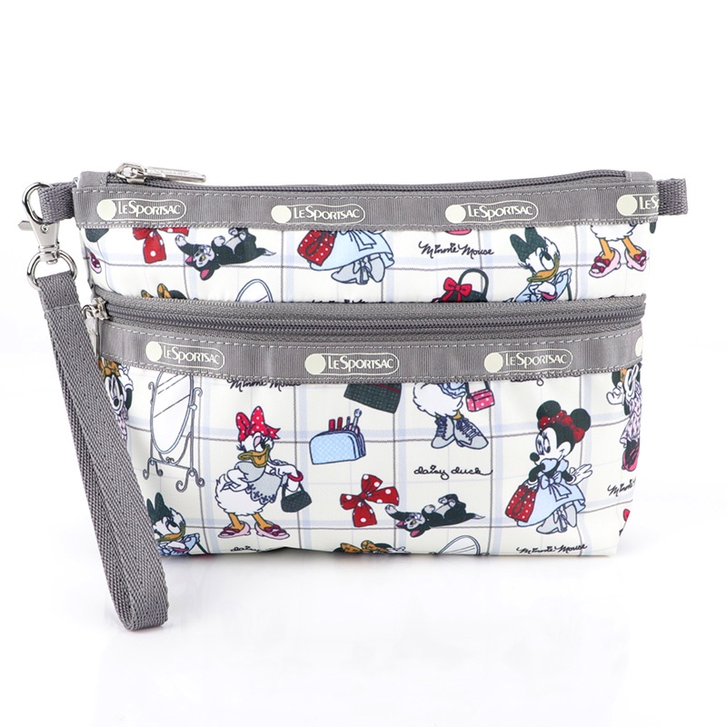 {瘋貓} LeS 樂播詩 7105【50款】輕便防水 兩條拉鏈雙層手繩手拿包 化妝包 零錢包 收納包 手機包鑰匙包