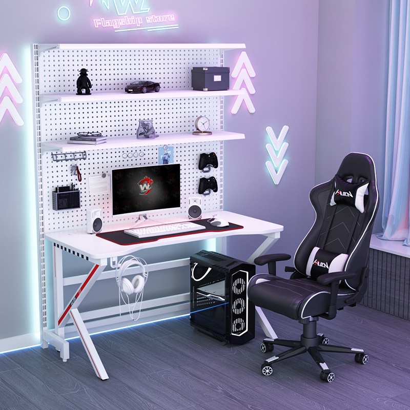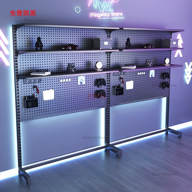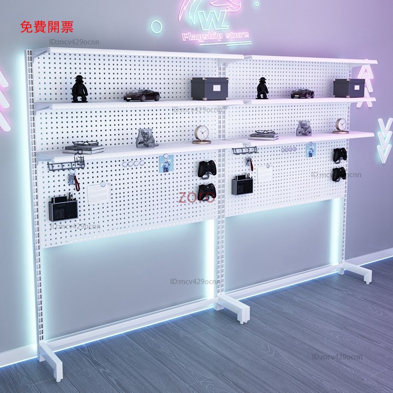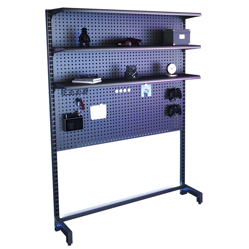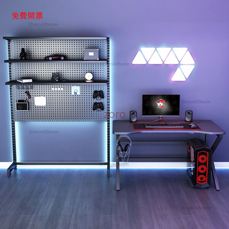 Mona家居免運 洞洞板 立式電競桌 電腦桌 免打孔書架 落地置物架 金屬收納墻Y2