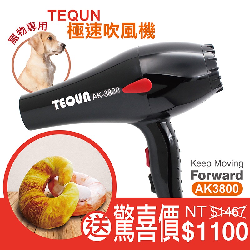 Mr.Hairs 頭髮先生 TEQUN極速吹風機AK3800+趣味U型枕組合