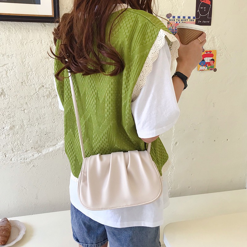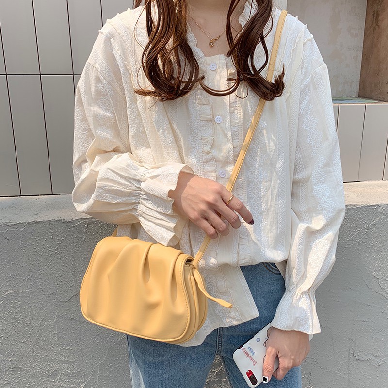 【太妮絲N41】現貨 韓系 療癒系包包 雲朵 皺褶 馬鞍包 CHIC 雲朵包 包包 肩背包 斜