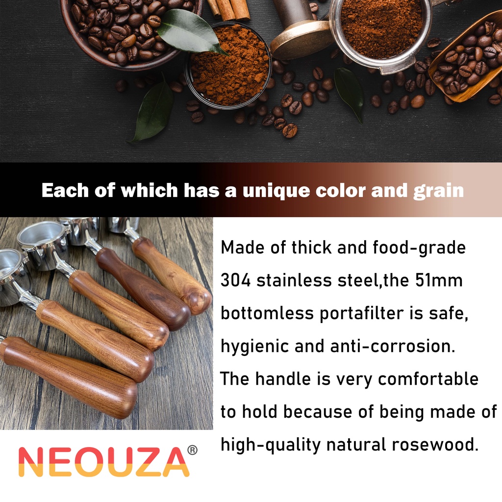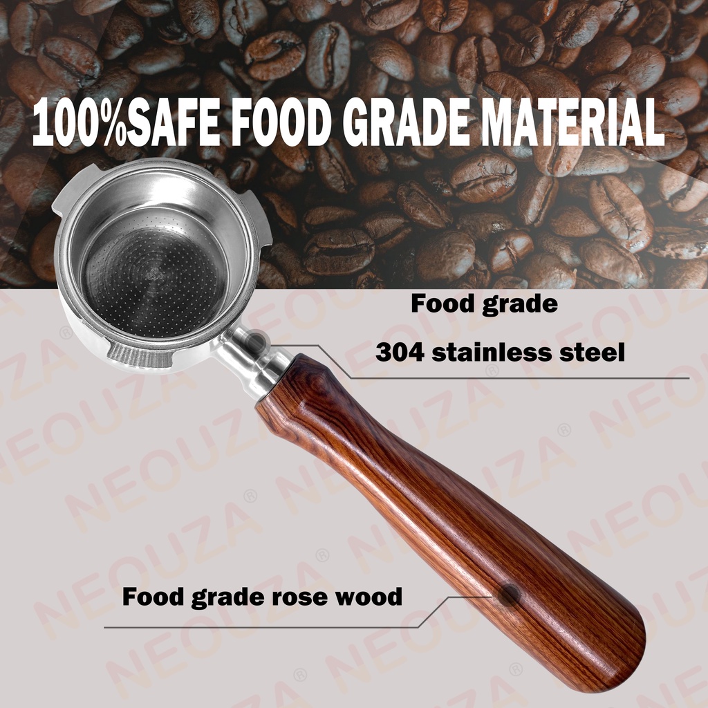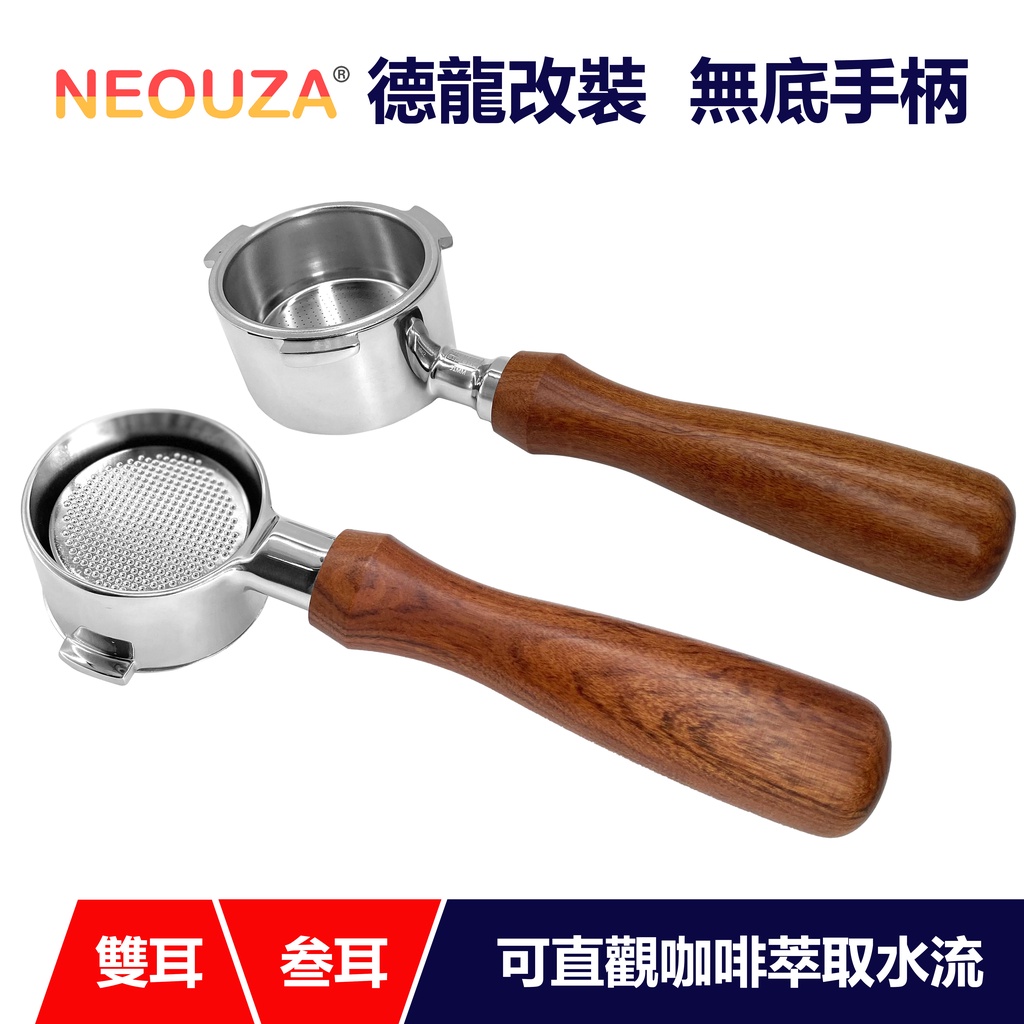 NEOUZA 51mm兩耳三耳(含粉碗)義式咖啡機手柄實木無底 304不鏽鋼適用De‘longhi EC680 / E