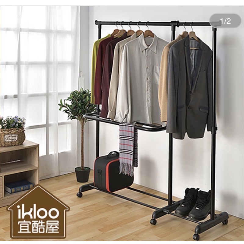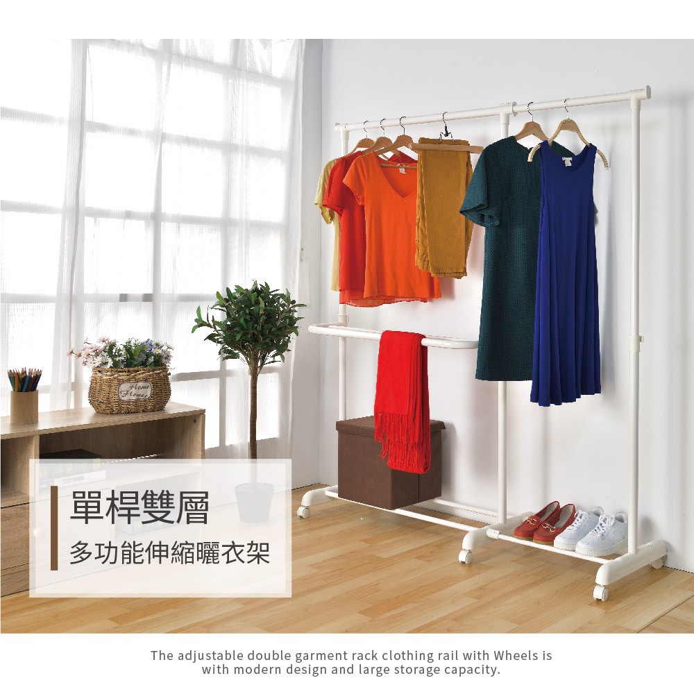 ikloo單層雙桿多功能伸縮曬衣架(黑白兩色)HG101 1入 方陣收納