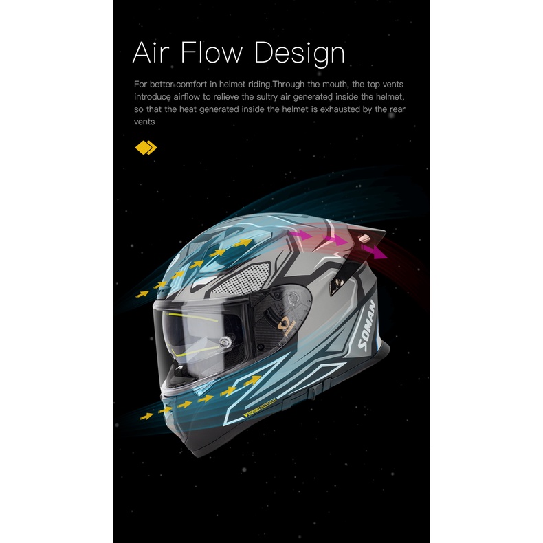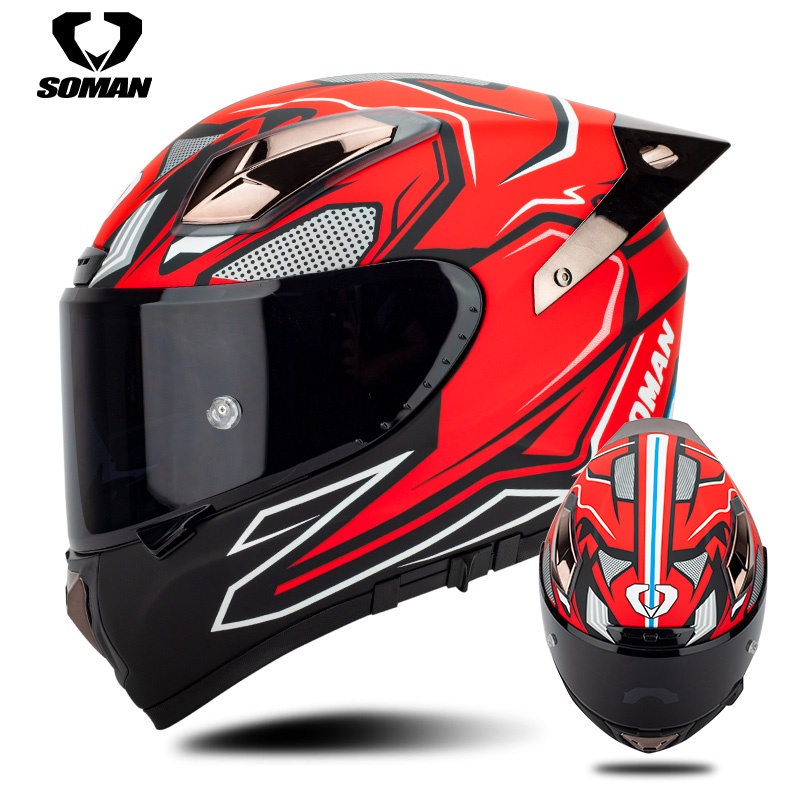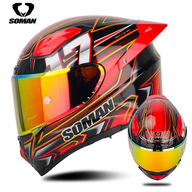 全罩式安全帽 SOMAN TAIKO 玻纖安全帽 國際安全雙認證 炫光防霧雙鏡片設計 透氣可拆洗