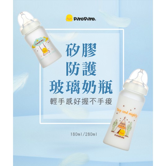 黃色小鴨P iyoPiyo 360°矽膠防護寬口徑玻璃奶瓶 280/180ml 玻璃奶瓶 奶瓶 【公司貨】小鼠的窩🌸