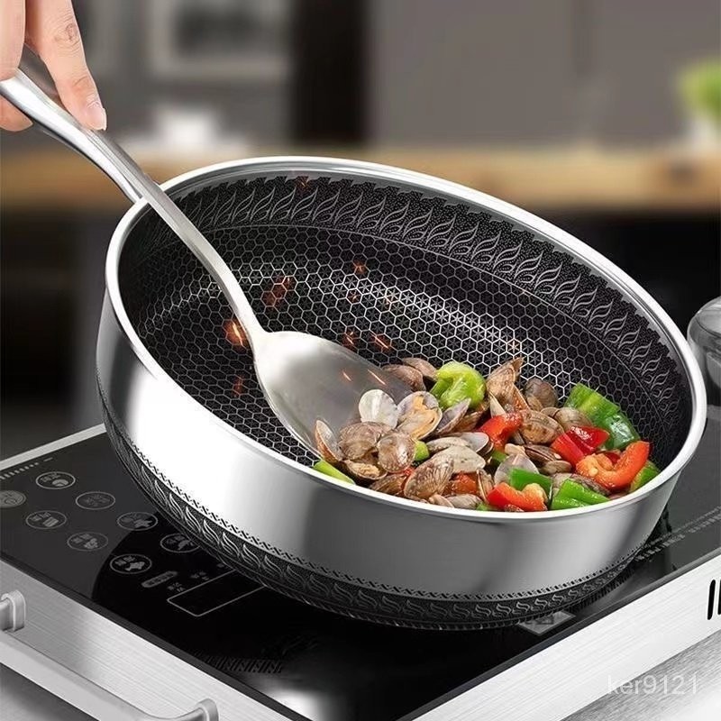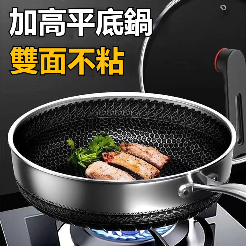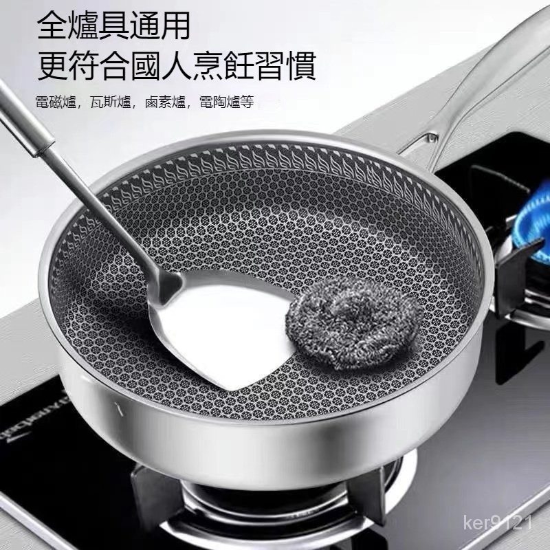 【台灣發貨】316L不銹鋼平底鍋不粘鍋煎鍋炒無塗層電磁爐燃氣通用 家用不粘锅无涂层炒菜锅电磁炉炒鍋 炒菜鍋蜂窩雪平鍋