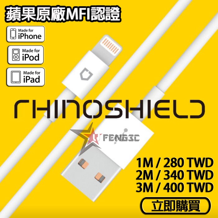 犀牛盾 MFi Lightning to/USB-C 3.1 to USB-A/C IPHONE 15 充電線/傳輸線