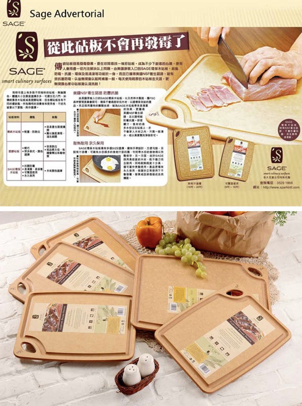 💪 現貨秒出【SAGE美國原裝】集水溝槽抗菌木砧板30X40X0.6輕巧型(永不發霉)