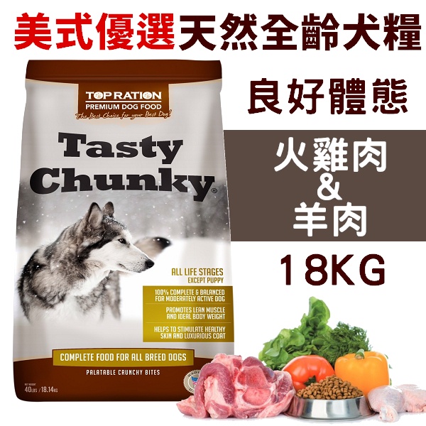 聯萌✨【免運🔥】Tasty Chunky美式優選全齡犬糧(良好體態配方)火雞肉&羊肉18kg天然狗飼料