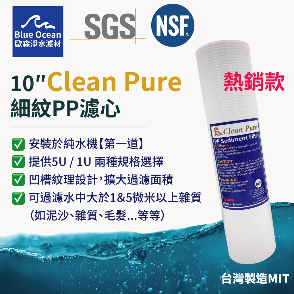 【BlueOcean歐森】CleanPure細紋PP棉質濾心/一微米五微米/NSFSGS認證/濾芯/RO淨水器/台製
